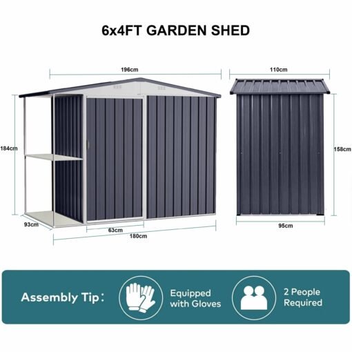 Con medidas de 196 cm de frente x 93 cm de profundidad x 190 cm de altura, este galpón brinda un amplio espacio para almacenamiento.
